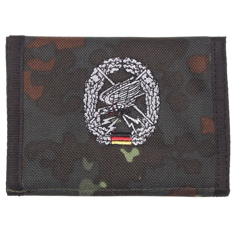 BW peněženka s maskáčovým vzorem Flecktarn a vyšitým znakem příslušného armádního útvaru německého Bundeswehr - Fernspäher