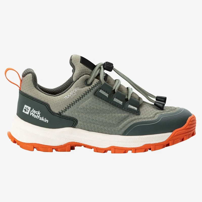 turistická bota pro děti s TEXAPORE CORE, který zajistí 100% voděodolnost a zároveň prodyšnost. Udrží nohy v suchu i za mokrého počasí. Zároveň je tento materiál velmi lehký a měkký a s vysoce odpruženou mezipodešví z EVA zajistí pohodlí i na dlouhé celodenní výpravy. Rychlezavazování - zajistí perfektní utáhnutí boty dle potřeby. Nastavitelný systém šněrování je nejrychlejší systém v obouvání, který děti prostě milují. Boty jsou speciálně vyvinuty pro pěší turistiku, nabízí dobrou trakci a podporu na vyznačených, prošlých stezkách i mimo nich. Odnímatelná, lehká , absorbující stélka EVA zajistí lepší stabilitu.